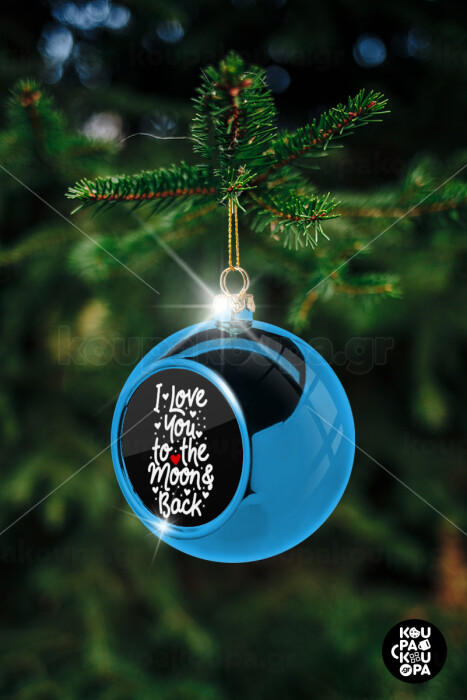 I love you to the moon and back with hearts, Στολίδι Χριστουγεννιάτικη μπάλα δένδρου Μπλε 8cm