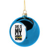 She is my wonder woman, Στολίδι Χριστουγεννιάτικη μπάλα δένδρου Μπλε 8cm