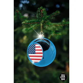 USA flag, Στολίδι Χριστουγεννιάτικη μπάλα δένδρου Μπλε 8cm