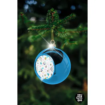 Unicorn pattern white, Στολίδι Χριστουγεννιάτικη μπάλα δένδρου Μπλε 8cm