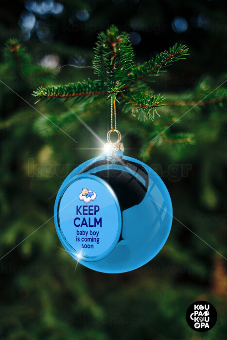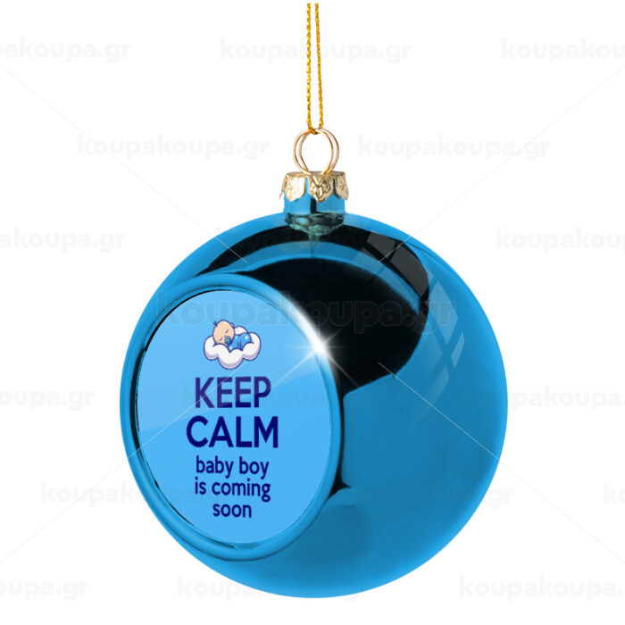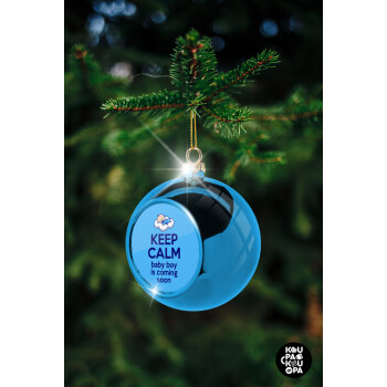 KEEP CALM baby boy is coming soon!!!, Στολίδι Χριστουγεννιάτικη μπάλα δένδρου Μπλε 8cm