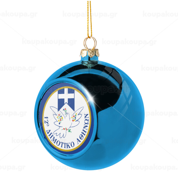 Σχολικό σήμα περιστέρι με δάφνες, Στολίδι Χριστουγεννιάτικη μπάλα δένδρου Μπλε 8cm