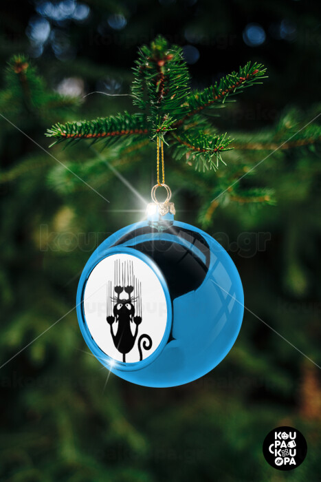 Cat scratching, Στολίδι Χριστουγεννιάτικη μπάλα δένδρου Μπλε 8cm