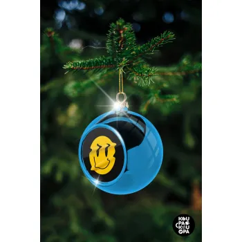 Smile avatar distrorted, Στολίδι Χριστουγεννιάτικη μπάλα δένδρου Μπλε 8cm