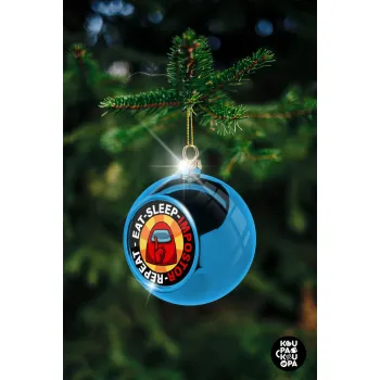 Among US Eat Sleep Repeat Impostor, Στολίδι Χριστουγεννιάτικη μπάλα δένδρου Μπλε 8cm