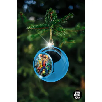 Ash Ketchum & Pikachu, Στολίδι Χριστουγεννιάτικη μπάλα δένδρου Μπλε 8cm