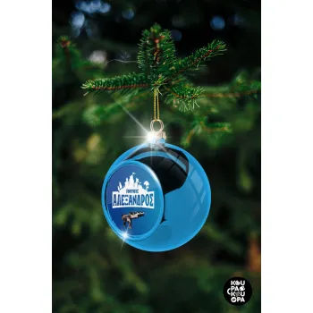 Fortnite with gun με το όνομα σου, Στολίδι Χριστουγεννιάτικη μπάλα δένδρου Μπλε 8cm