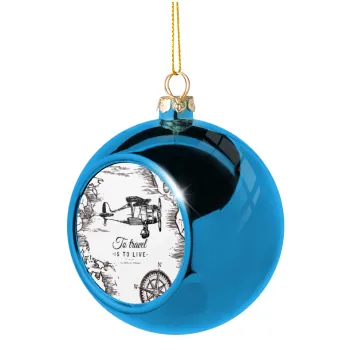To travel is to live, Στολίδι Χριστουγεννιάτικη μπάλα δένδρου Μπλε 8cm