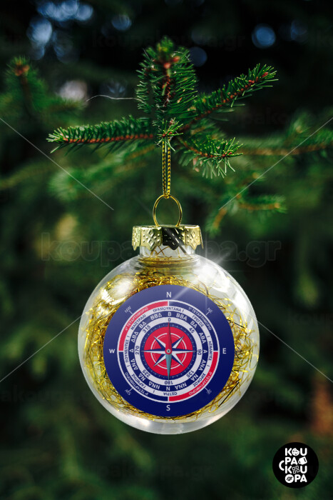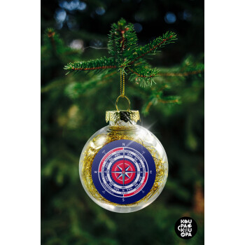 Ανεμολόγιο χάρτης πυξίδα ναυτικού, Στολίδι Χριστουγεννιάτικη μπάλα δένδρου διάφανη με χρυσό γέμισμα 8cm