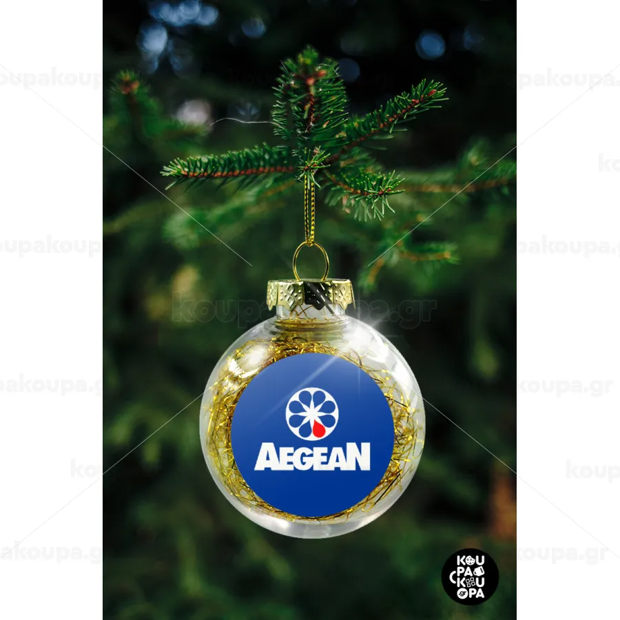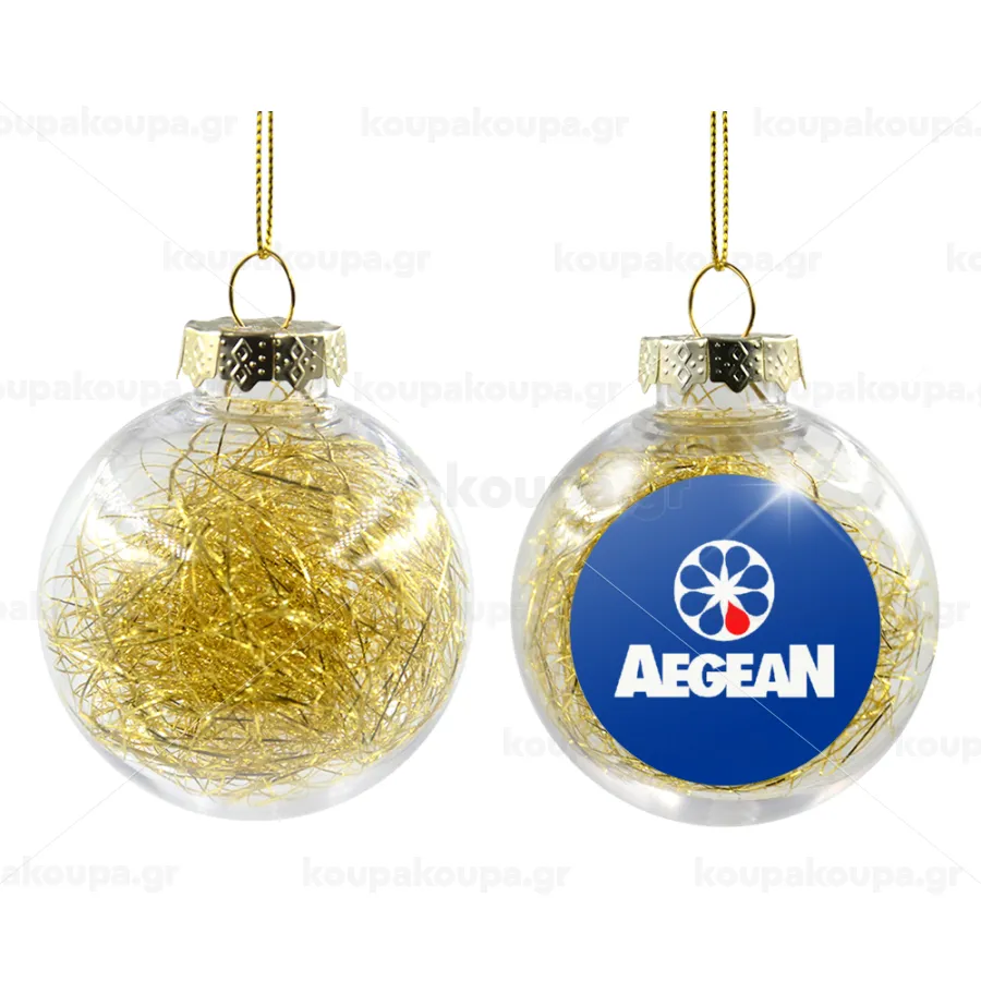 Πρατήριο καυσίμων AEGEAN, Στολίδι Χριστουγεννιάτικη μπάλα δένδρου διάφανη με χρυσό γέμισμα 8cm
