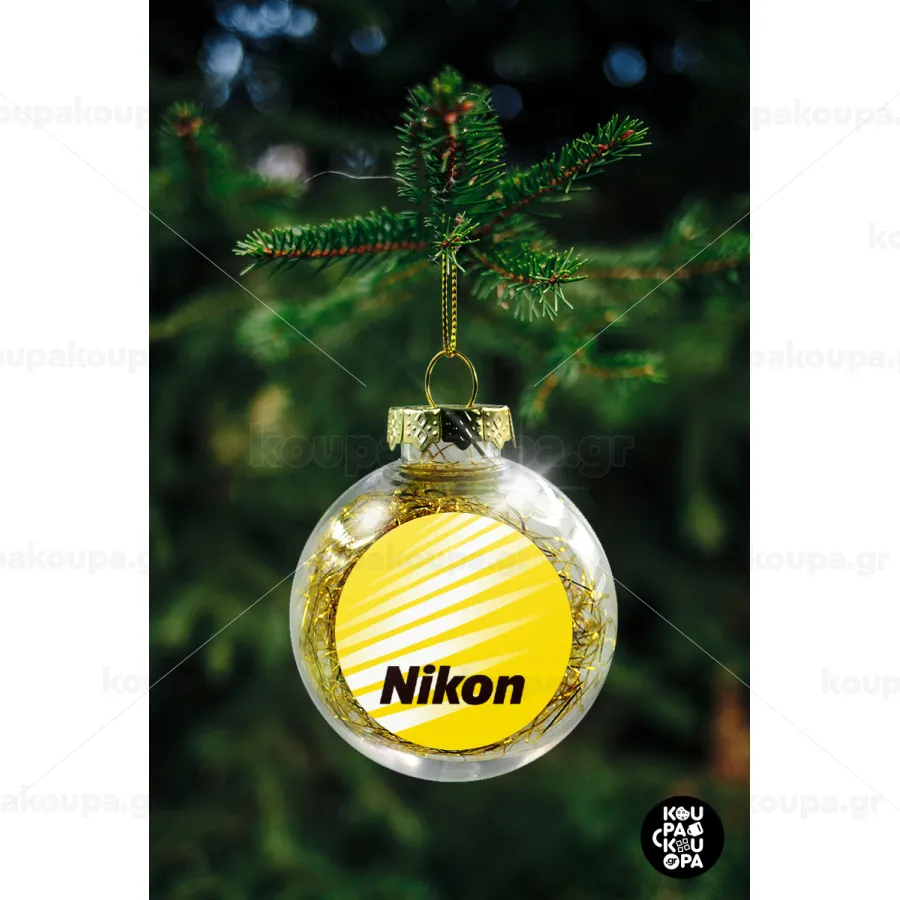 Nikon, Στολίδι Χριστουγεννιάτικη μπάλα δένδρου διάφανη με χρυσό γέμισμα 8cm