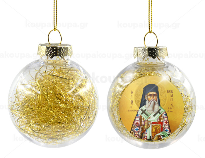 Άγιος Νεκτάριος, Στολίδι Χριστουγεννιάτικη μπάλα δένδρου διάφανη με χρυσό γέμισμα 8cm