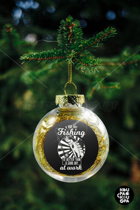 A bad day FISHING is better than a good day at work, Στολίδι Χριστουγεννιάτικη μπάλα δένδρου διάφανη με χρυσό γέμισμα 8cm