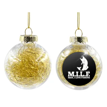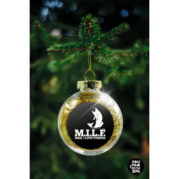 M.I.L.F. Mam i love fishing, Στολίδι Χριστουγεννιάτικη μπάλα δένδρου διάφανη με χρυσό γέμισμα 8cm