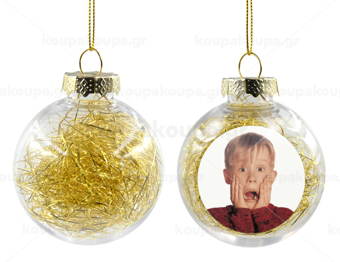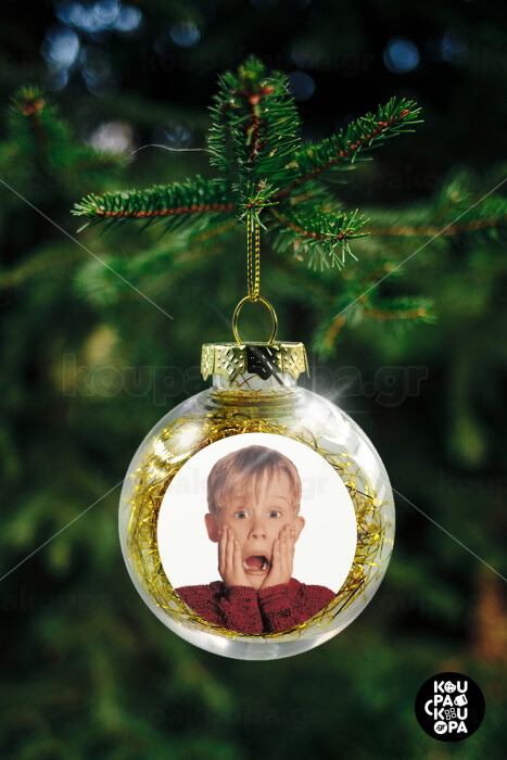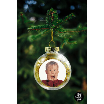 Μόνος στο σπίτι Kevin McCallister Shocked, Στολίδι Χριστουγεννιάτικη μπάλα δένδρου διάφανη με χρυσό γέμισμα 8cm