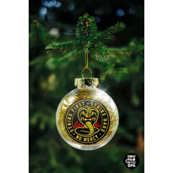 cobra kai strike first dojo, Στολίδι Χριστουγεννιάτικη μπάλα δένδρου διάφανη με χρυσό γέμισμα 8cm