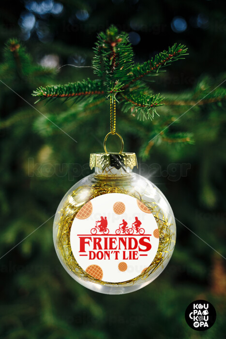 Friends Don't Lie, Stranger Things, Στολίδι Χριστουγεννιάτικη μπάλα δένδρου διάφανη με χρυσό γέμισμα 8cm