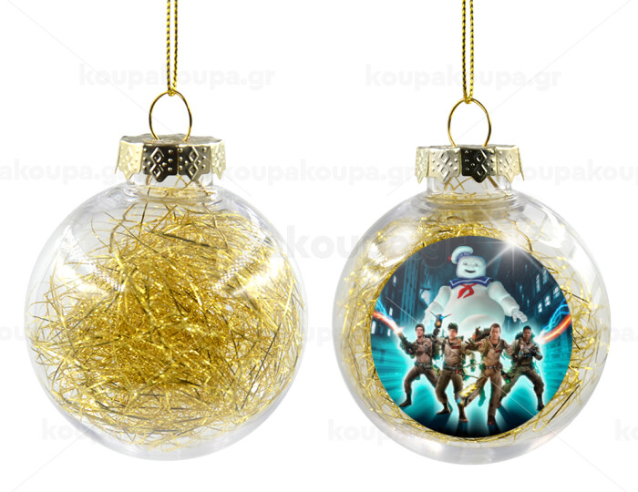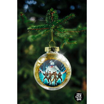 Ghostbusters team, Στολίδι Χριστουγεννιάτικη μπάλα δένδρου διάφανη με χρυσό γέμισμα 8cm