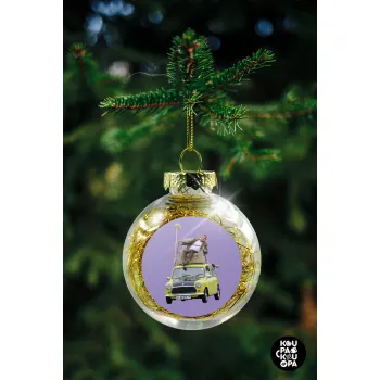 Mr. Bean mini 1000, Στολίδι Χριστουγεννιάτικη μπάλα δένδρου διάφανη με χρυσό γέμισμα 8cm
