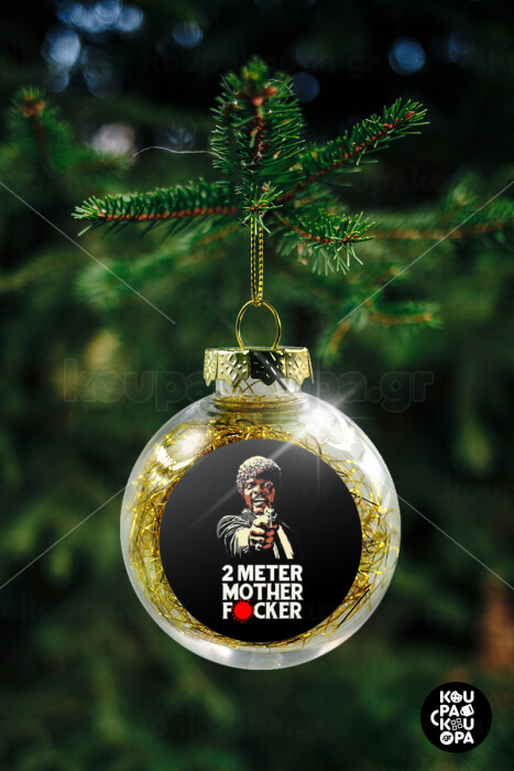 Pulp Fiction 2 meter mother f...r, Στολίδι Χριστουγεννιάτικη μπάλα δένδρου διάφανη με χρυσό γέμισμα 8cm
