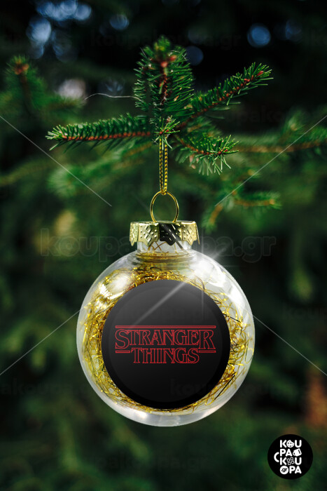 Stranger Things Logo, Στολίδι Χριστουγεννιάτικη μπάλα δένδρου διάφανη με χρυσό γέμισμα 8cm