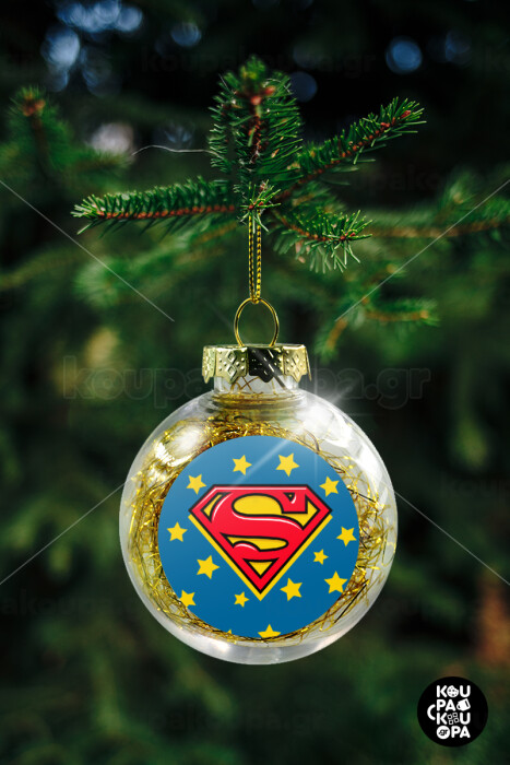 Superman Blue, Στολίδι Χριστουγεννιάτικη μπάλα δένδρου διάφανη με χρυσό γέμισμα 8cm