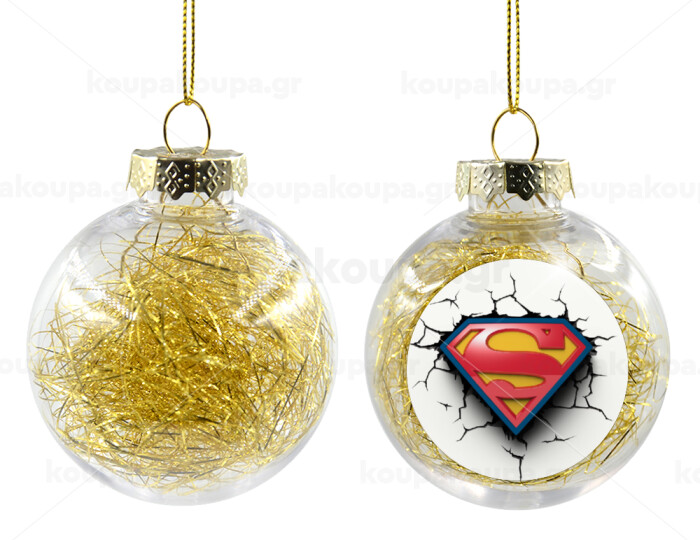 Superman cracked, Στολίδι Χριστουγεννιάτικη μπάλα δένδρου διάφανη με χρυσό γέμισμα 8cm