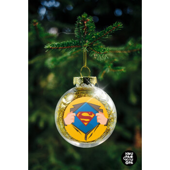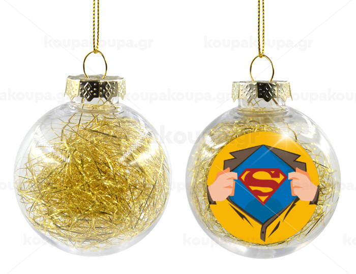 Superman hands, Στολίδι Χριστουγεννιάτικη μπάλα δένδρου διάφανη με χρυσό γέμισμα 8cm