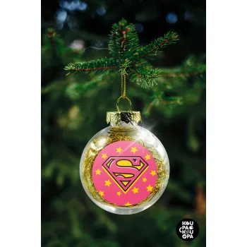 Superman Pink, Στολίδι Χριστουγεννιάτικη μπάλα δένδρου διάφανη με χρυσό γέμισμα 8cm
