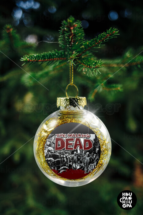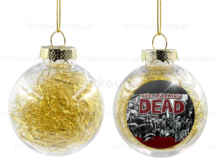 The walking dead comic drawing zombie, Στολίδι Χριστουγεννιάτικη μπάλα δένδρου διάφανη με χρυσό γέμισμα 8cm