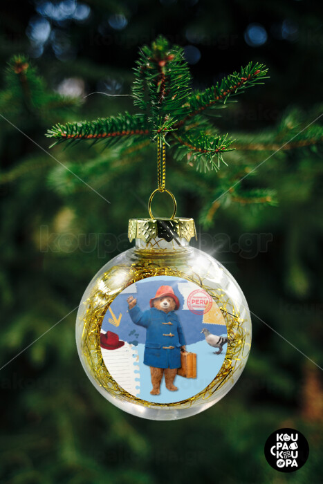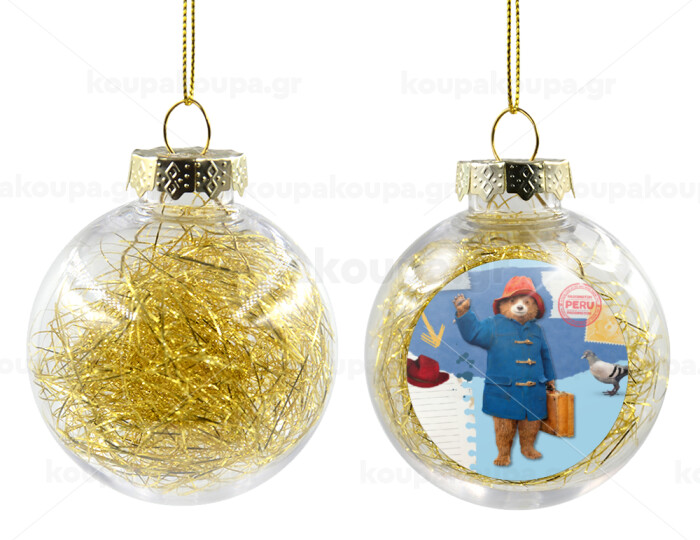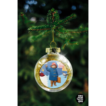 Αρκουδάκι Πάντινγκτον, Στολίδι Χριστουγεννιάτικη μπάλα δένδρου διάφανη με χρυσό γέμισμα 8cm