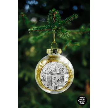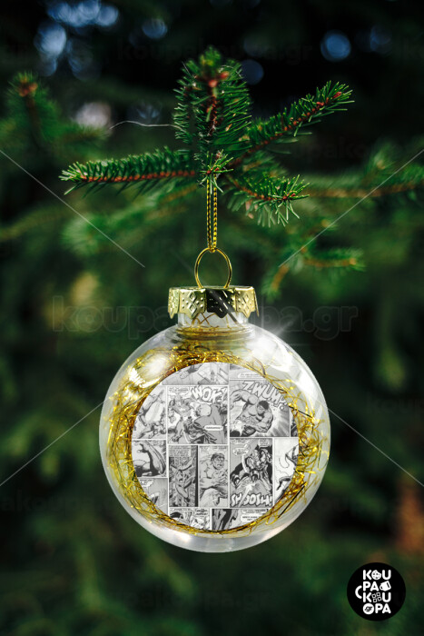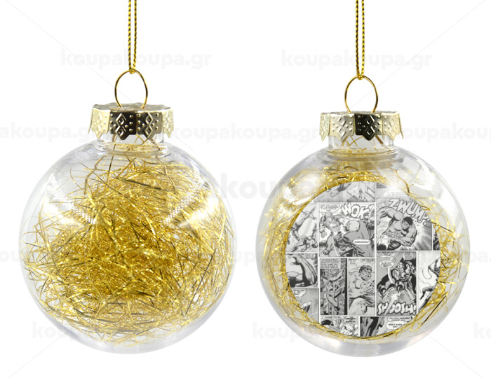 Classic comic Limited B/W, Στολίδι Χριστουγεννιάτικη μπάλα δένδρου διάφανη με χρυσό γέμισμα 8cm