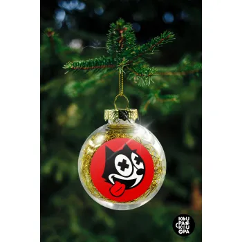 helix the cat, Στολίδι Χριστουγεννιάτικη μπάλα δένδρου διάφανη με χρυσό γέμισμα 8cm