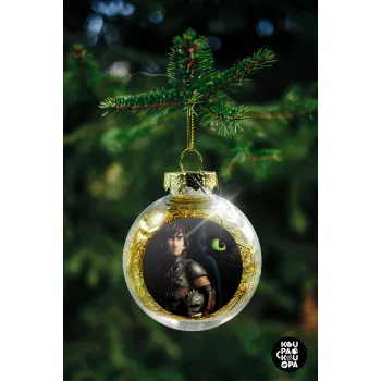 How to train your dragon Night Fury, Στολίδι Χριστουγεννιάτικη μπάλα δένδρου διάφανη με χρυσό γέμισμα 8cm