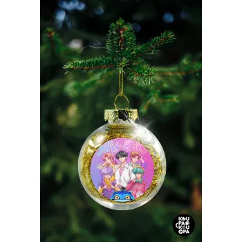 Huntrix Saja Boys, Στολίδι Χριστουγεννιάτικη μπάλα δένδρου διάφανη με χρυσό γέμισμα 8cm