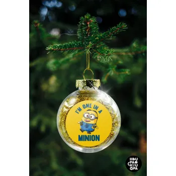 I'm one in a minion, Στολίδι Χριστουγεννιάτικη μπάλα δένδρου διάφανη με χρυσό γέμισμα 8cm