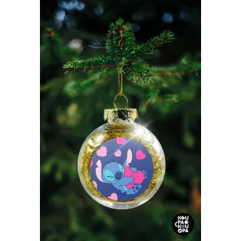 Lilo & Stitch hugs and hearts, Στολίδι Χριστουγεννιάτικη μπάλα δένδρου διάφανη με χρυσό γέμισμα 8cm