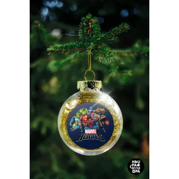 MARVEL heroes, Στολίδι Χριστουγεννιάτικη μπάλα δένδρου διάφανη με χρυσό γέμισμα 8cm