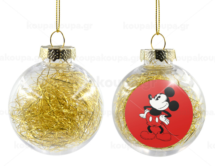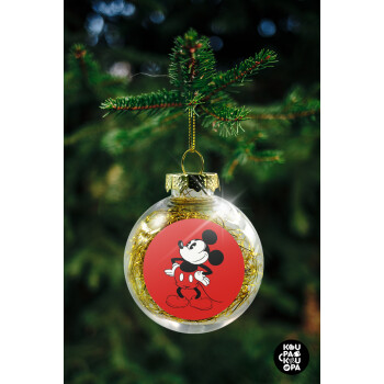 Mickey Classic, Στολίδι Χριστουγεννιάτικη μπάλα δένδρου διάφανη με χρυσό γέμισμα 8cm