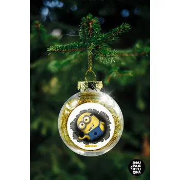 Minions hi, Στολίδι Χριστουγεννιάτικη μπάλα δένδρου διάφανη με χρυσό γέμισμα 8cm