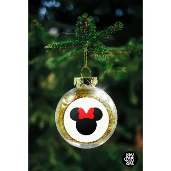 Minnie head, Στολίδι Χριστουγεννιάτικη μπάλα δένδρου διάφανη με χρυσό γέμισμα 8cm