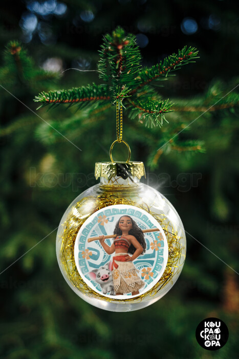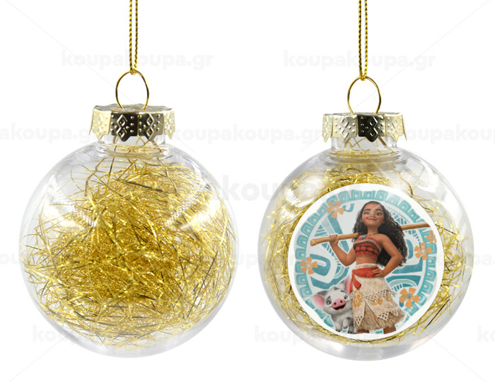 Moana, Στολίδι Χριστουγεννιάτικη μπάλα δένδρου διάφανη με χρυσό γέμισμα 8cm