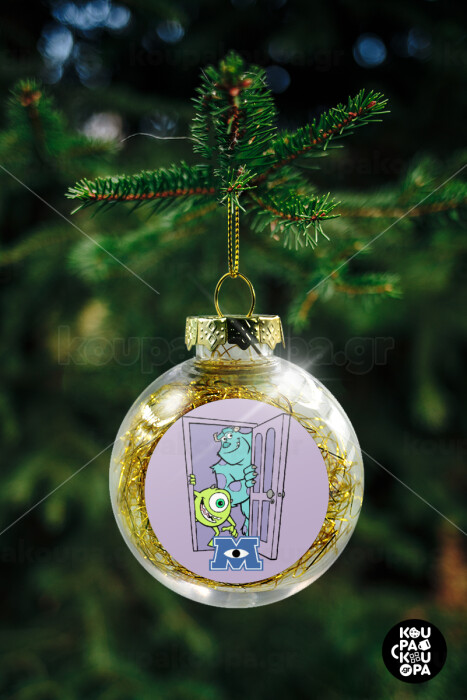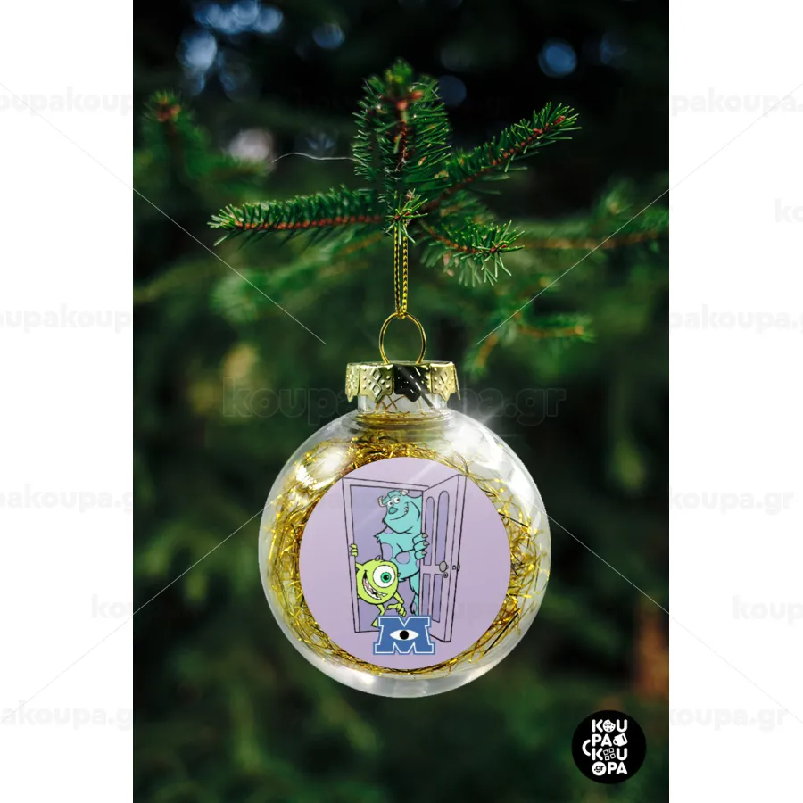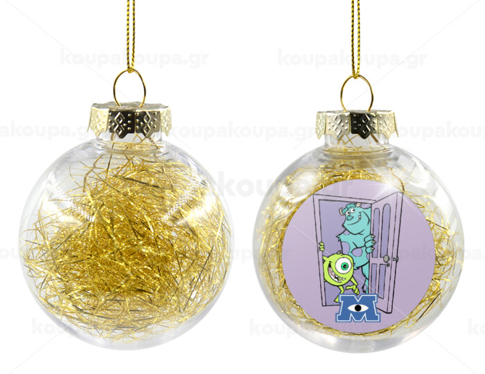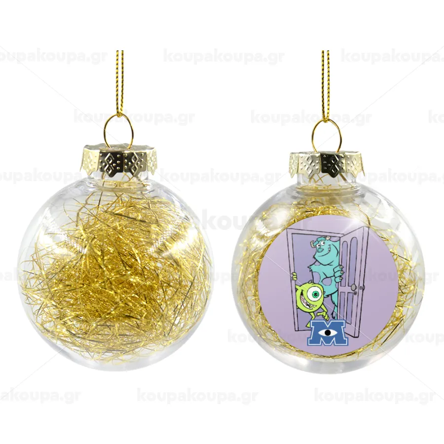 Monster inc, Στολίδι Χριστουγεννιάτικη μπάλα δένδρου διάφανη με χρυσό γέμισμα 8cm