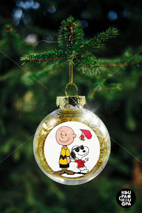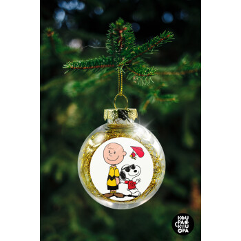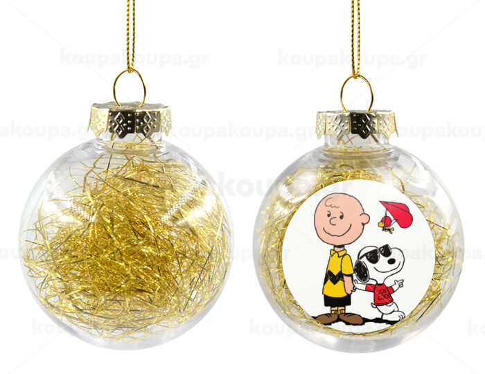 Snoopy & Joe, Στολίδι Χριστουγεννιάτικη μπάλα δένδρου διάφανη με χρυσό γέμισμα 8cm