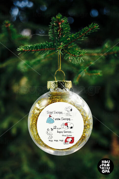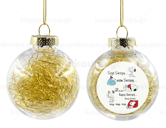 Snoopy manual, Στολίδι Χριστουγεννιάτικη μπάλα δένδρου διάφανη με χρυσό γέμισμα 8cm