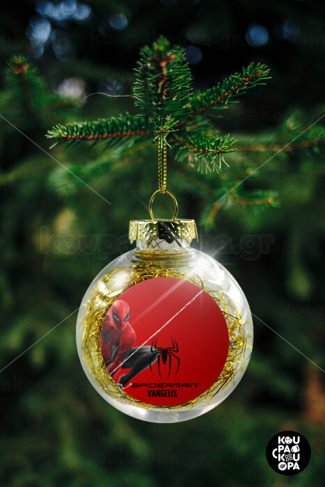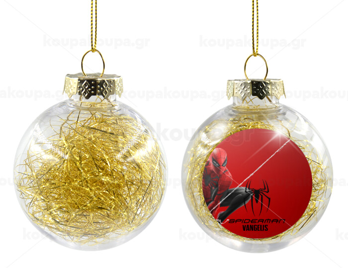 Spiderman, Στολίδι Χριστουγεννιάτικη μπάλα δένδρου διάφανη με χρυσό γέμισμα 8cm