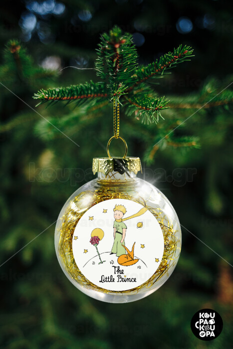 Ο μικρός πρίγκιπας classic, Στολίδι Χριστουγεννιάτικη μπάλα δένδρου διάφανη με χρυσό γέμισμα 8cm