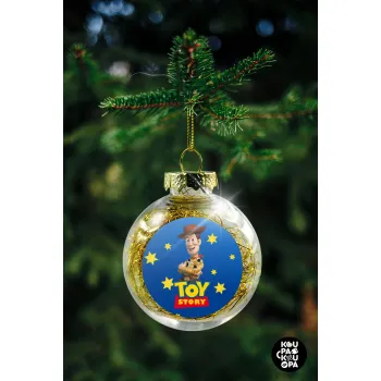 Woody cowboy, Στολίδι Χριστουγεννιάτικη μπάλα δένδρου διάφανη με χρυσό γέμισμα 8cm