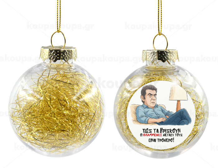 ΠΩΣ ΤΑ ΒΡΙΣΚΟΥΝ ΟΙ ΒΛΑ....ΝΟΙ ΜΕΤΑΞΥ ΤΟΥΣ, ΕΙΝΑΙ ΤΡΟΜΕΡΟ!!!, Στολίδι Χριστουγεννιάτικη μπάλα δένδρου διάφανη με χρυσό γέμισμα 8cm