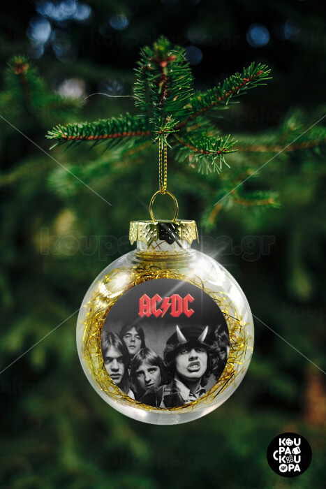 AC/DC angus, Στολίδι Χριστουγεννιάτικη μπάλα δένδρου διάφανη με χρυσό γέμισμα 8cm